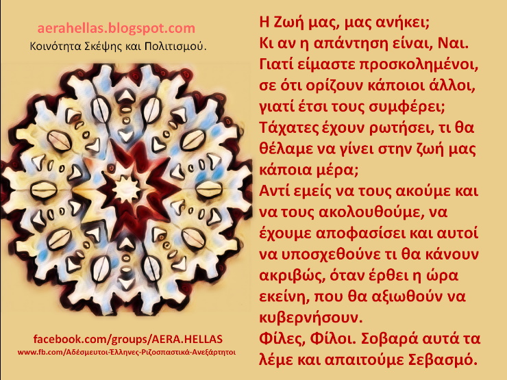 Ελλάδα Είμαστε Όλοι Μαζί. Όποιος Αγαπά την Χώρα, Αγωνίζεται Ειρηνικά.
