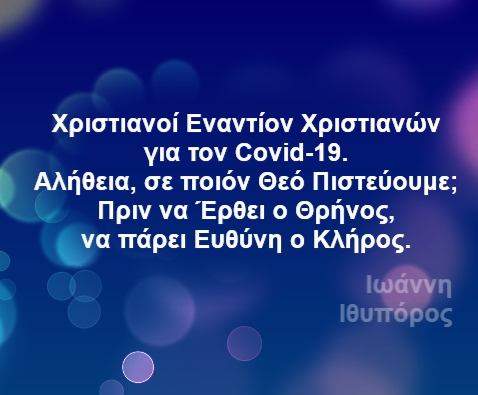 Πρόταση: Να Αναλάβουν τις Ευθύνες τους οι Κληρικοί. Επειγόντως, πριν ο Θεός μας επιβάλλει την Θρηνωδία.