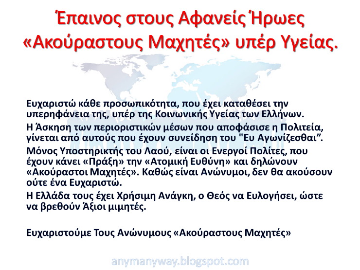 Διατείνεται Πολιτικός Συνταγματολόγος, ότι ο εμβολιασμός είναι παράνομος και παράλογος. Και επιμένει σθεναρά, πώς όλες οι κυβερνήσεις είναι εξαγορασμένες και πειθήνια όργανα έξω-θεσμικών συστημάτων. Συνεπώς, πολύ χρήμα εξαγοράζει όλες τις Κυβερνήσεις και Παραπλανεί χιλιάδες επιστήμονες, δεν είναι όμως αρκετό να εξαγοράσει τους αρνητές των μέτρων προφύλαξης και των εμβολίων.
