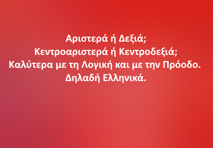 Προτείνουμε Λοιπόν κι εμείς, να επιστρέψει ο Σεβασμός στην Πρόοδο του Τόπου και η Αγάπη μας στην Ελλάδα. Και όσοι Ζουν Κομματικά, καλύτερα Ελληνικά να Ζουν, μην τύχει και χαθούν τα πάντα στην Ελλάδα.