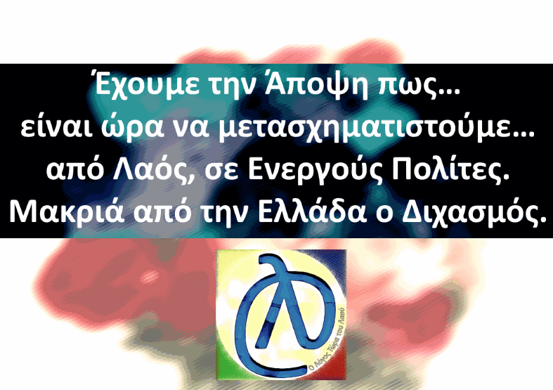 Τόσα Χρόνια χάθηκε το χρώμα στην Ελλάδα. Κύριοι υπεύθυνοι για την κατάσταση αυτή, είναι κατά βάση οι Πολιτικοί. Κατά βάση, διότι στην ουσία είμαστε υπεύθυνοι και εμείς οι Πολίτες. Δεν αναφέρομαι στον Λαό, διότι ο λαός αδιαφορεί ως φαίνεται – ίσως από κούραση ή το χειρότερο από απελπισία. Όσοι πολίτες θέλουμε να είμαστε Ενεργοί – δηλαδή να ανησυχούμε για την κοινωνία και να αναζητούμε λύσεις – πρέπει να συζητήσουμε παραγωγικά τους τρόπους υπεράσπισης της Δημοκρατίας και της Ελευθερίας στην έκφραση της Βούλησης μας.