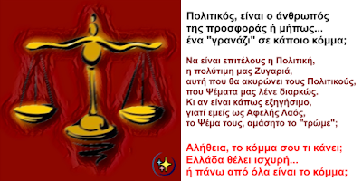 Ο Πολιτικός Χρόνος και οι Πολιτικές Συγκυρίες μεταβάλλονται συνεχώς και ραγδαίως. Η Πολιτική Σκηνή Απαιτεί μη συμβατική λειτουργία πολιτικών. Είναι Καιρός να οργανωθεί ο Πολιτικός Κόσμος, έτσι ώστε να είναι Επιστημονικά Ενημερωμένος, Κατάλληλα Εξοπλισμένος και Πατριωτικά Αφοσιωμένος.