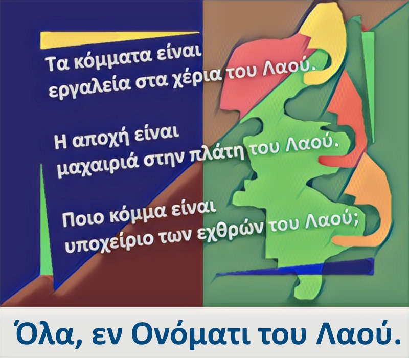 Πολιτικέ, τι είναι αυτά που μας ομιλείς, όταν άλλα Λόγια λες και άλλες είναι οι Πράξεις σου; Γνωρίζουμε πια το Αλφάβητο. Στο εξής δεν θα μας βρεις πια ως αφελείς. Σας γνωρίζουμε καλά και σας μετρούμε καθημερινά, θα περάσουν τέσσερα Χρόνια και θα το δείξουμε στην Κάλπη. Ναι; τώρα πια είναι ο Λαός Ενημερωμένος. Τα έργα σας φωνάζουν πια για εσάς, τα λόγια σας, δεν μας πλανεύουν.