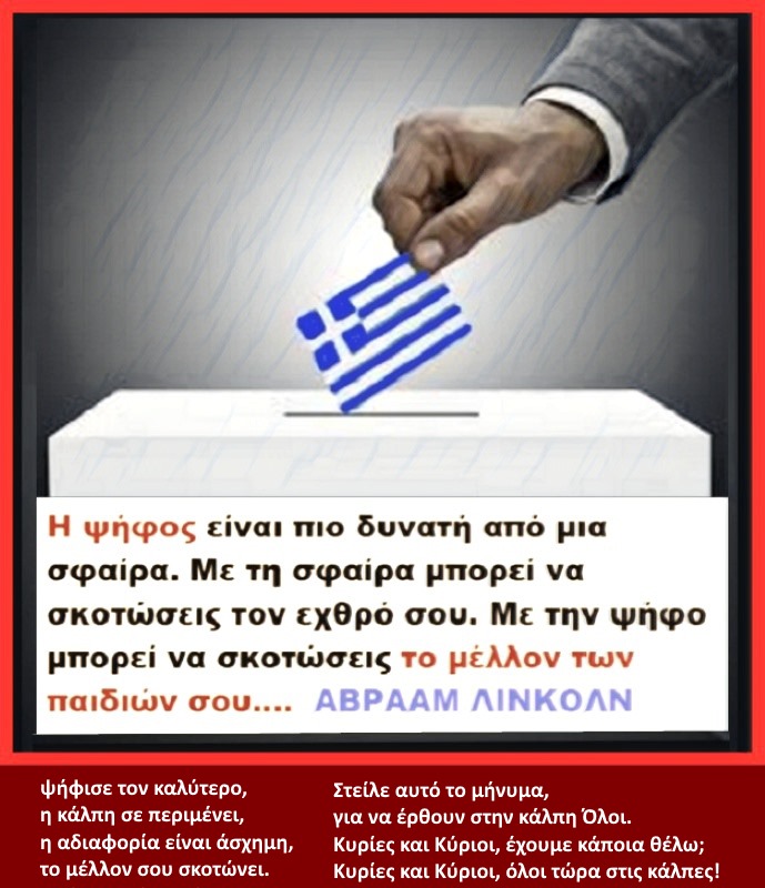 Ειρηνικό μας όπλο-εργαλείο, είναι η Ψήφος,